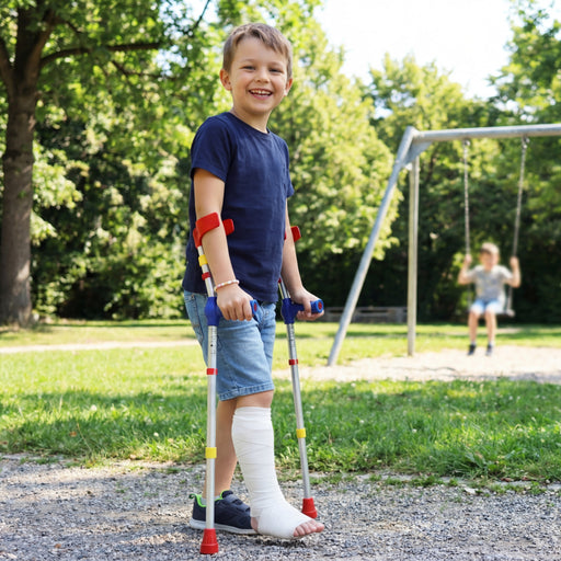 5. Muletas infantiles: además del tipo de apoyo y de si son plegables, hay muletas diseñadas específicamente para niños. La única diferencia es que tienen dimensiones más pequeñas.