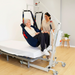 ♥ ELÉCTRICA Y SEGURA: Grúa de transferencia eléctrica para evitar sobresfuerzos garantizando estabilidad y control total en cada elevación. Evita desplazamientos no deseados y asegurando una sujeción firme con los frenos metálicos de las patas traseras.